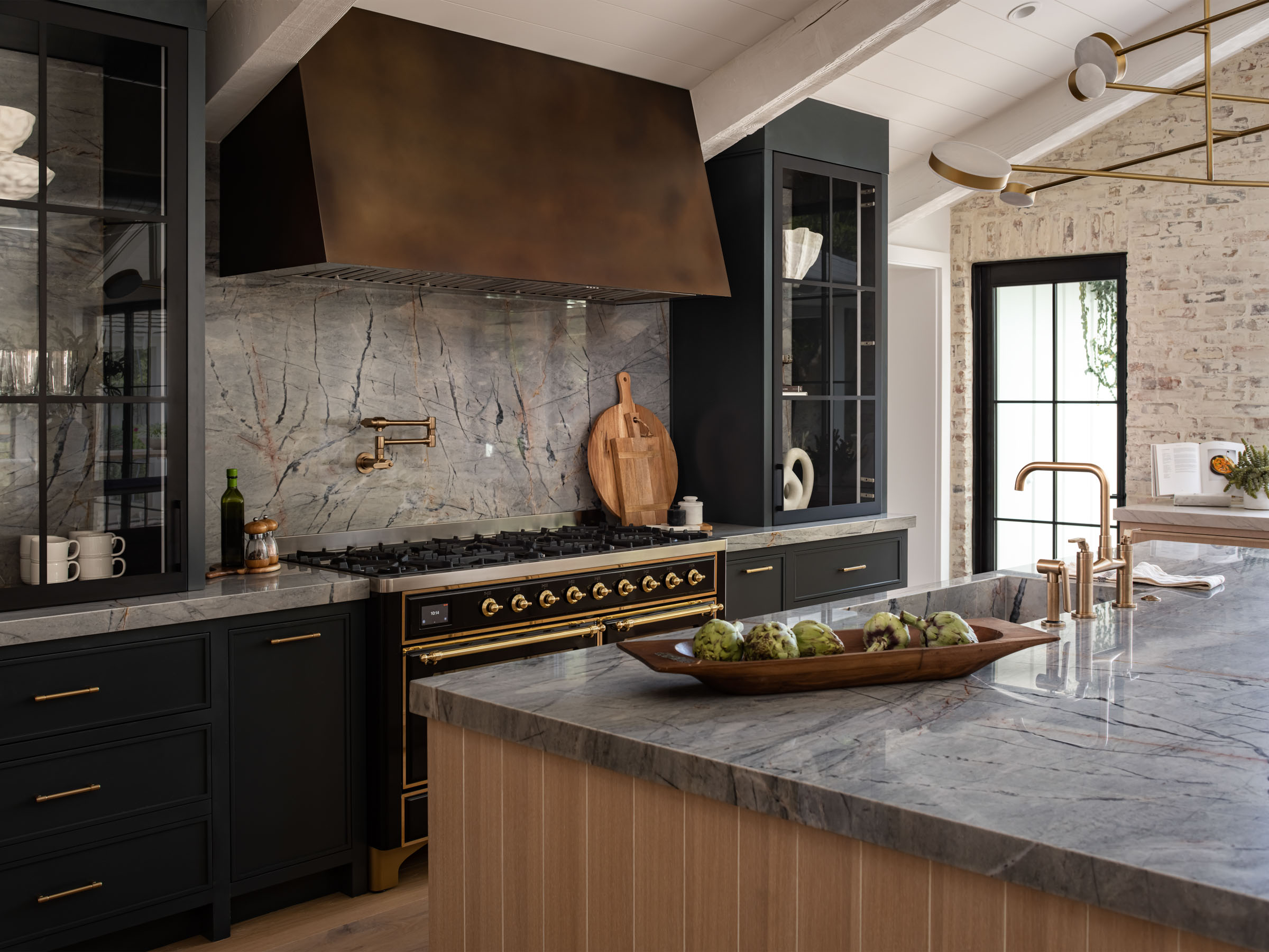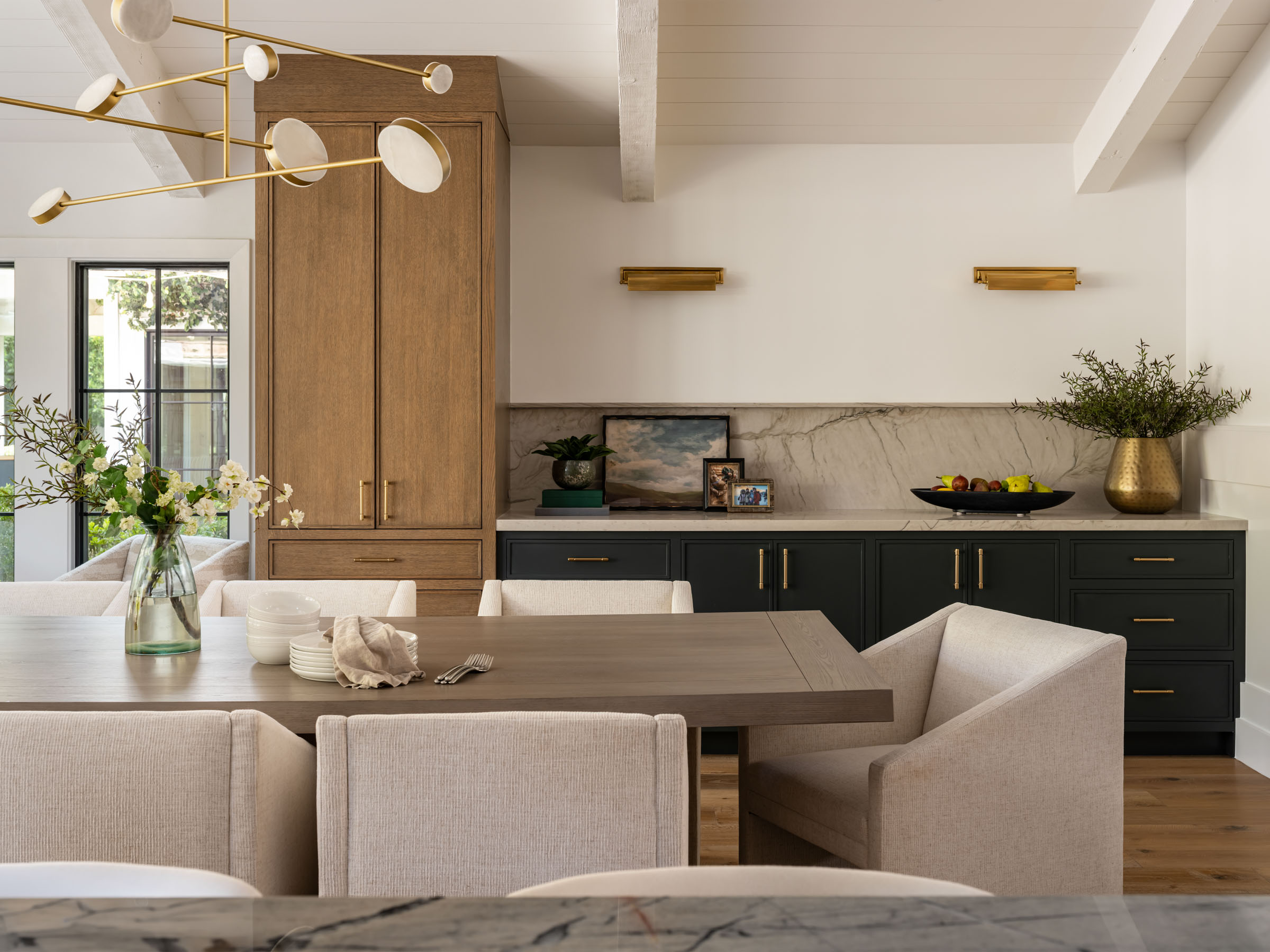Graceful Arcadia Remodel, located in Arcadia, Scottsdale, is a thoughtfully reimagined remodel that honors the architectural integrity of the home while introducing a refined, modern sensibility. Our vision was to create a seamless blend of traditional warmth and clean-lined simplicity, resulting in spaces that feel both elevated and deeply livable. The kitchen became the heart of the transformation. We reworked the layout to improve flow and functionality, incorporating two islands to support gathering and everyday living. Custom cabinetry, a tailored hood detail, and layered materials, including rich blue tones, warm brass accents, natural stone, metal, and glass, add depth and quiet contrast. Throughout the home, texture and symmetry were used intentionally to create balance, while honoring the original character that makes Arcadia so special. The result is a timeless, grounded design that feels graceful, cohesive, and beautifully connected from room to room.