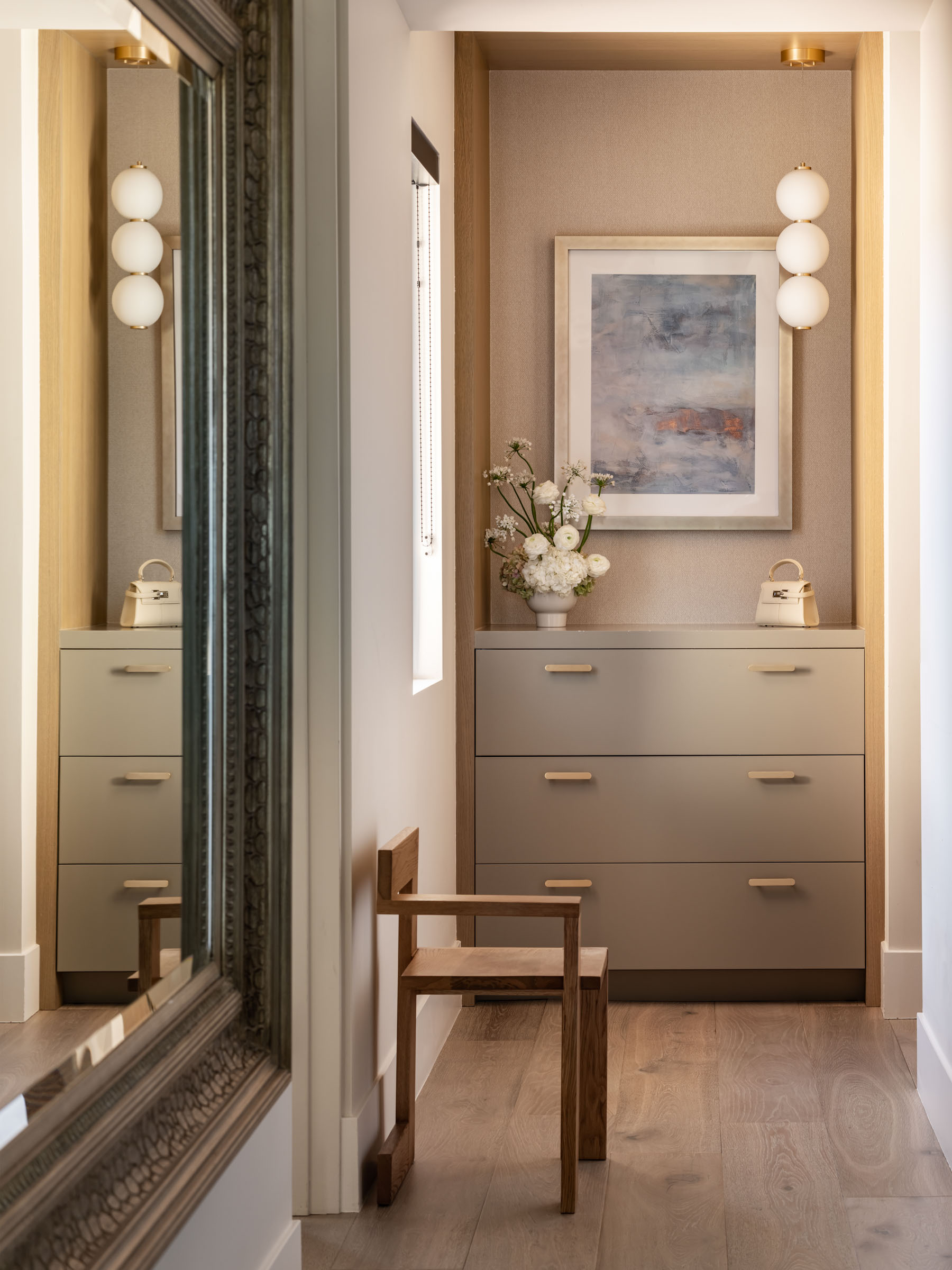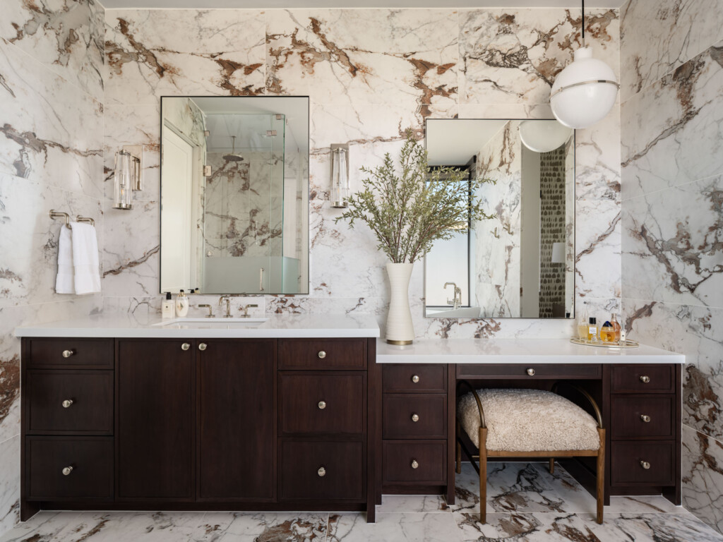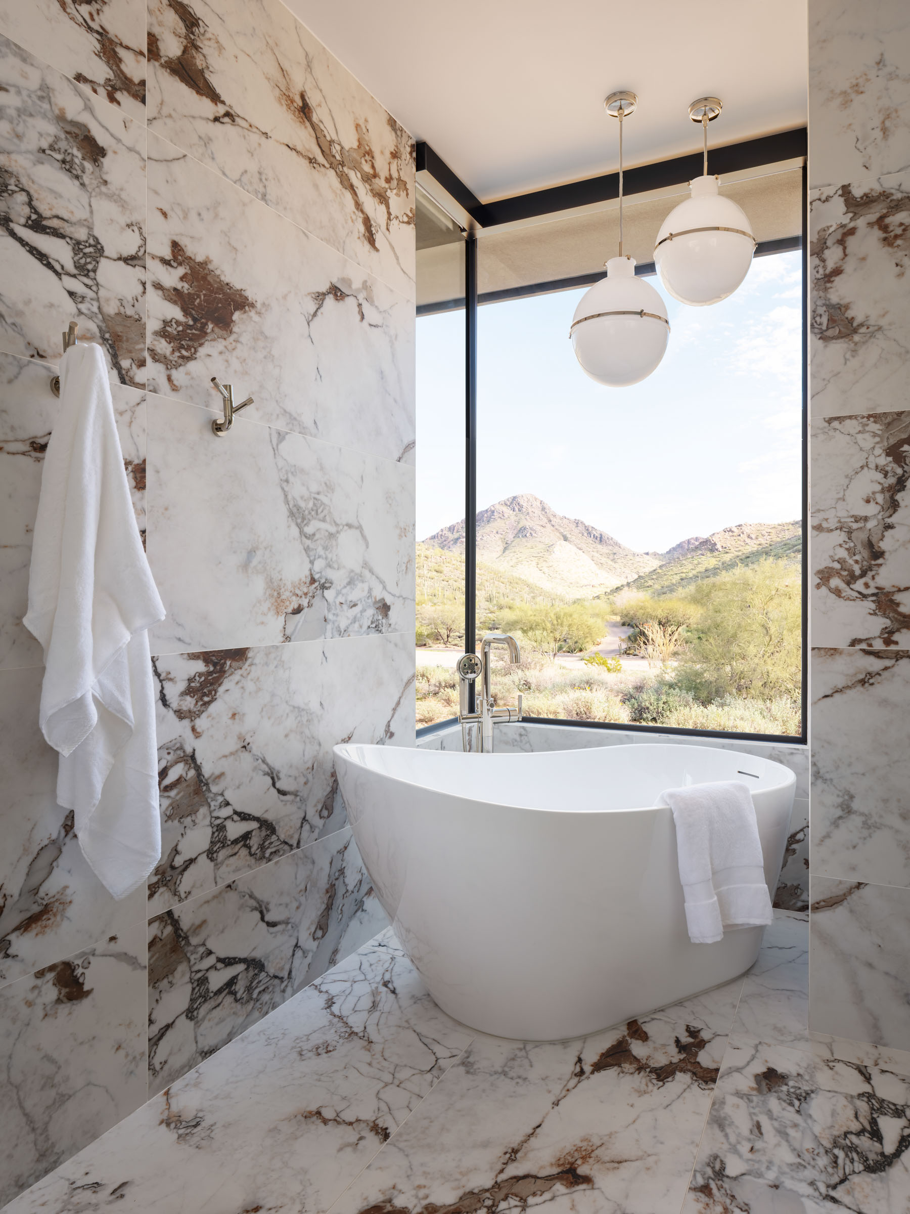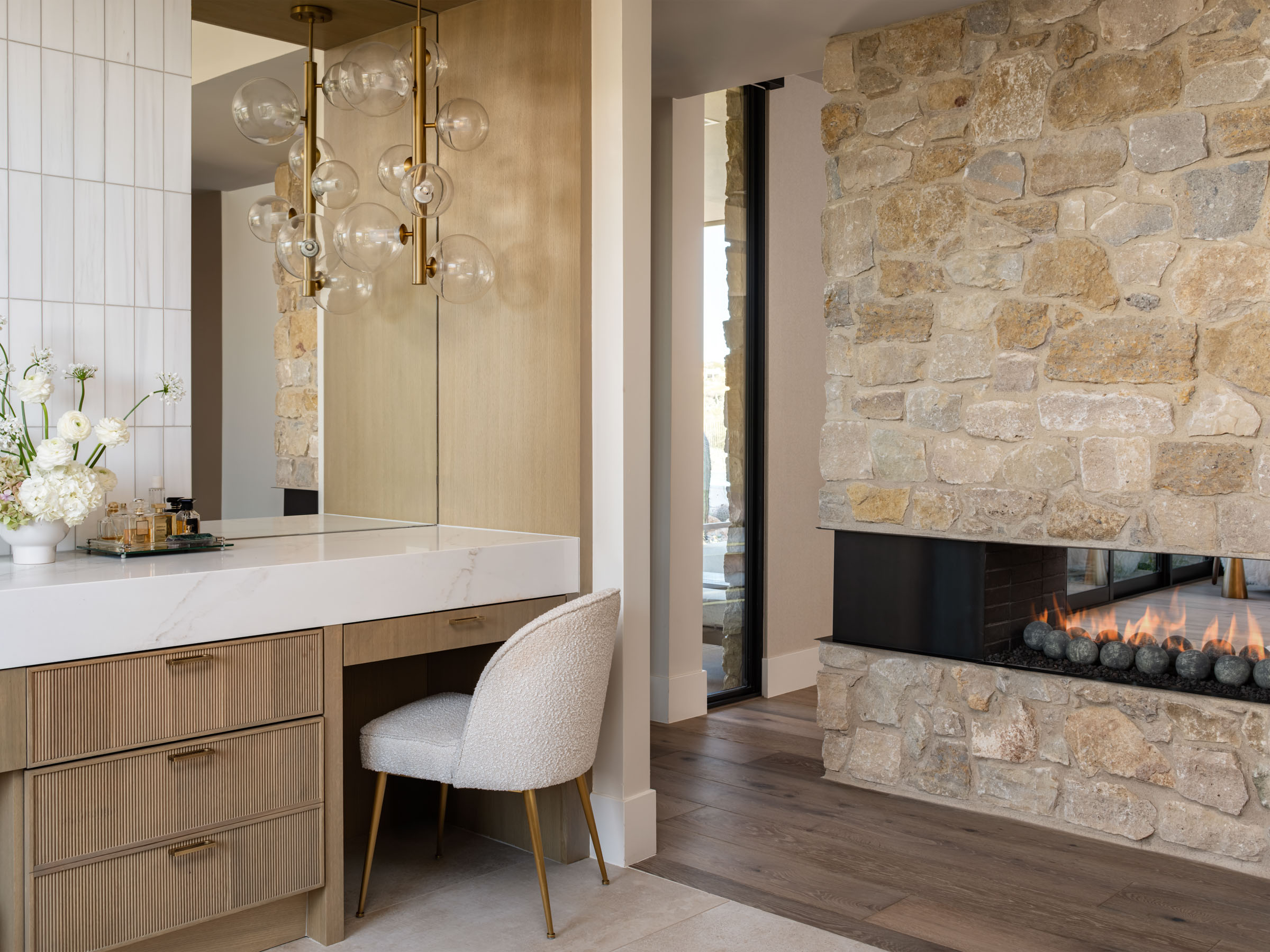 Perched within the Sonoran Desert, our Pinnacle Peak Estate new build project reflects the work of our luxury interior design firm in Scottsdale. Created with Modern Splendor Custom Homes and Clint Miller Architect, the home preserves the natural desert landscape while opening to sweeping mountain views. Contemporary architecture is softened by warm woods, stone, and a desert-inspired palette. Designed for empty nesters with space for visiting family, the home includes a custom casita as a mother’s suite—where clean modern lines meet a refined touch of glam, seamlessly layered into the overall design.